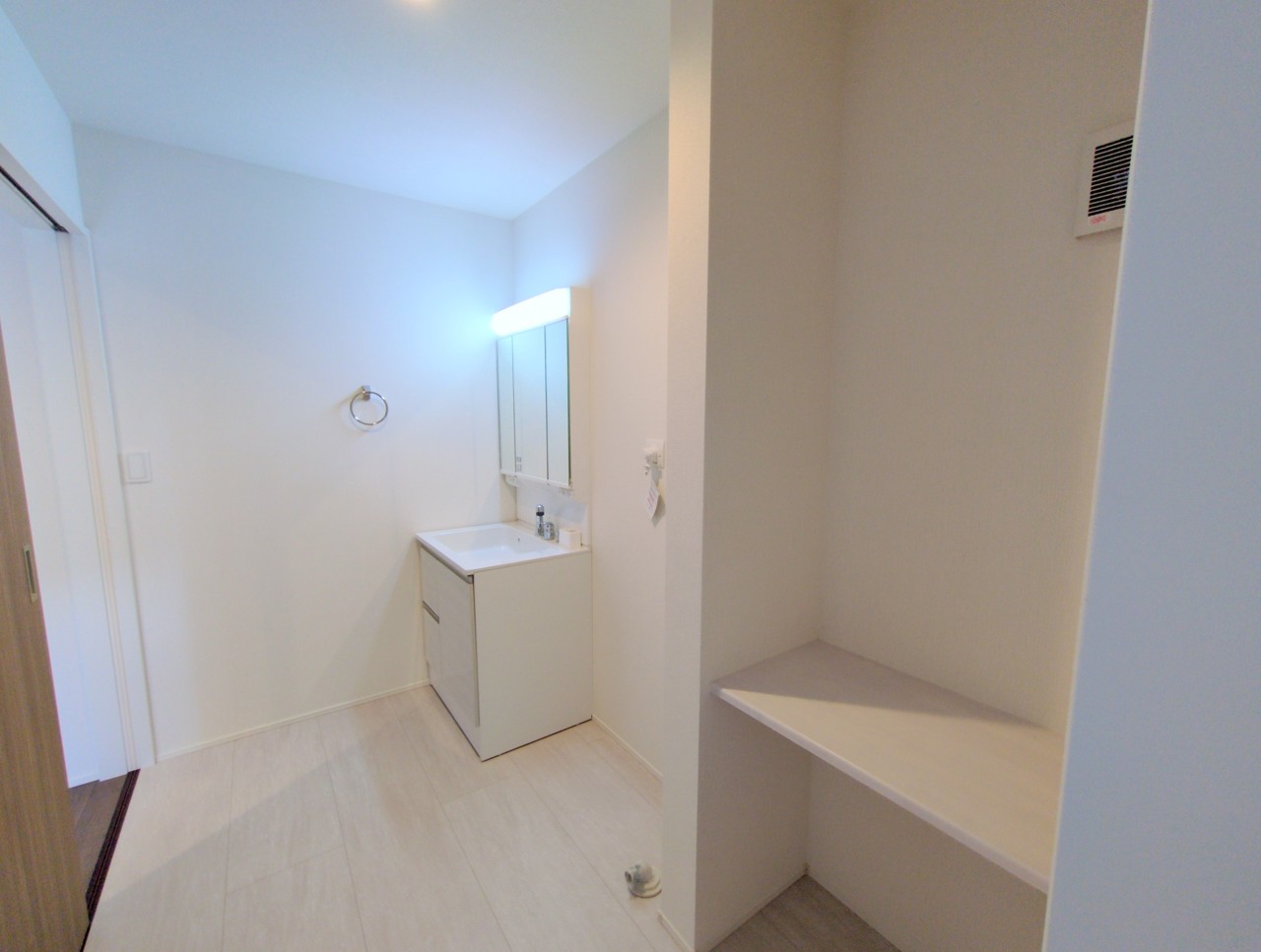 2号棟 たっぷりの収納を設けたシャワー付洗面台で快適な暮らし。 2026/03/27m
