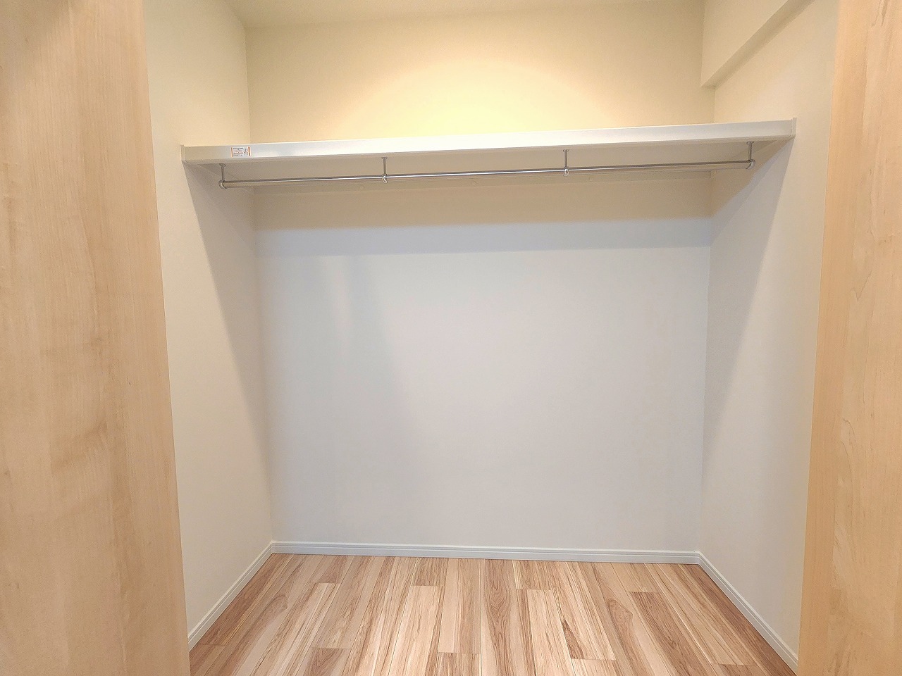 濃いめの木目調が、白い壁紙にマッチして木の暖かさを演出してます。