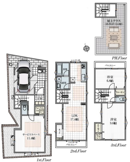 | 間取 | 2SLDK (LDK17.4帖、洋室9.6帖、洋室6.8帖、S11.4帖) | ||