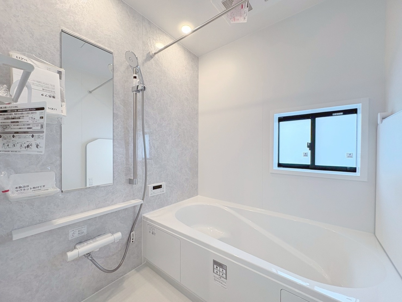 清潔感あふれる白で統一された、心地よいバスタイムを予感させる空間
