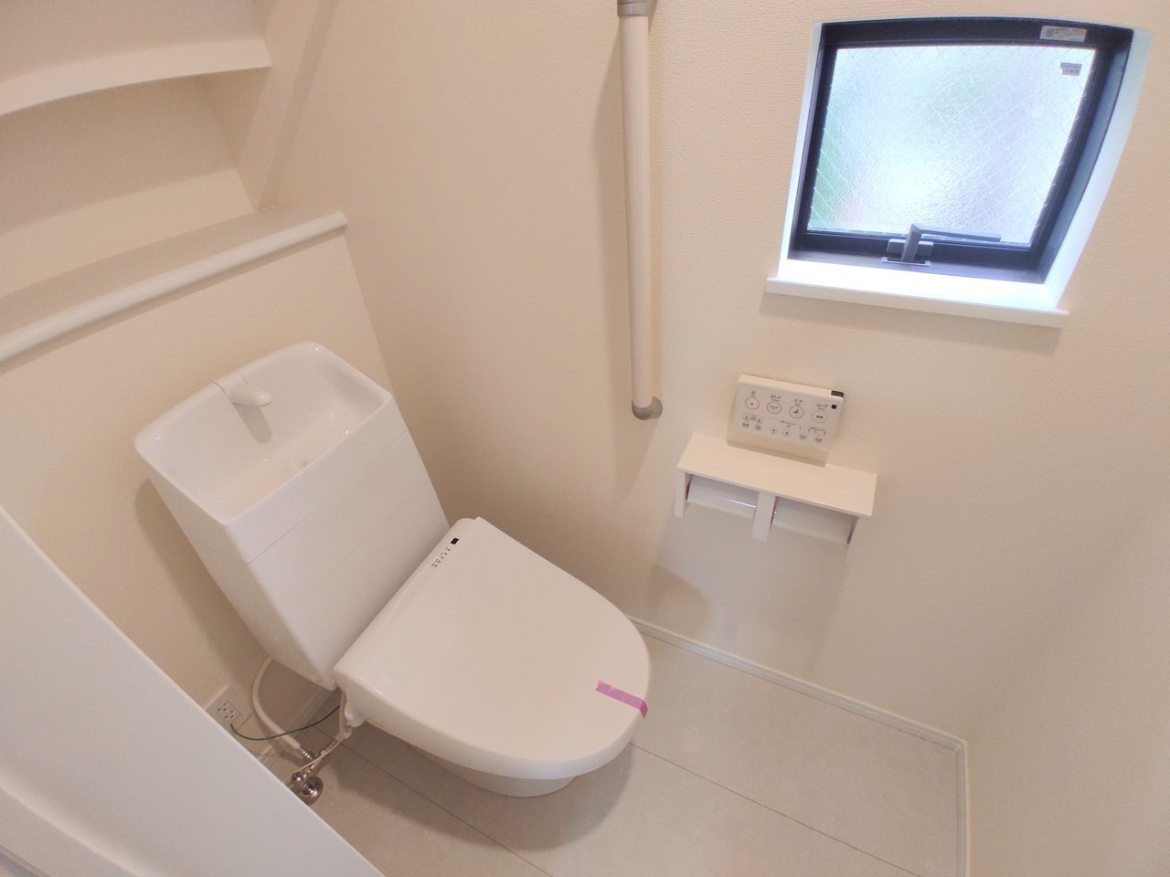 今すぐということはなくとも、いずれはお世話になるお手洗いの手すり付き。もちろんウォシュレットも付いてます。