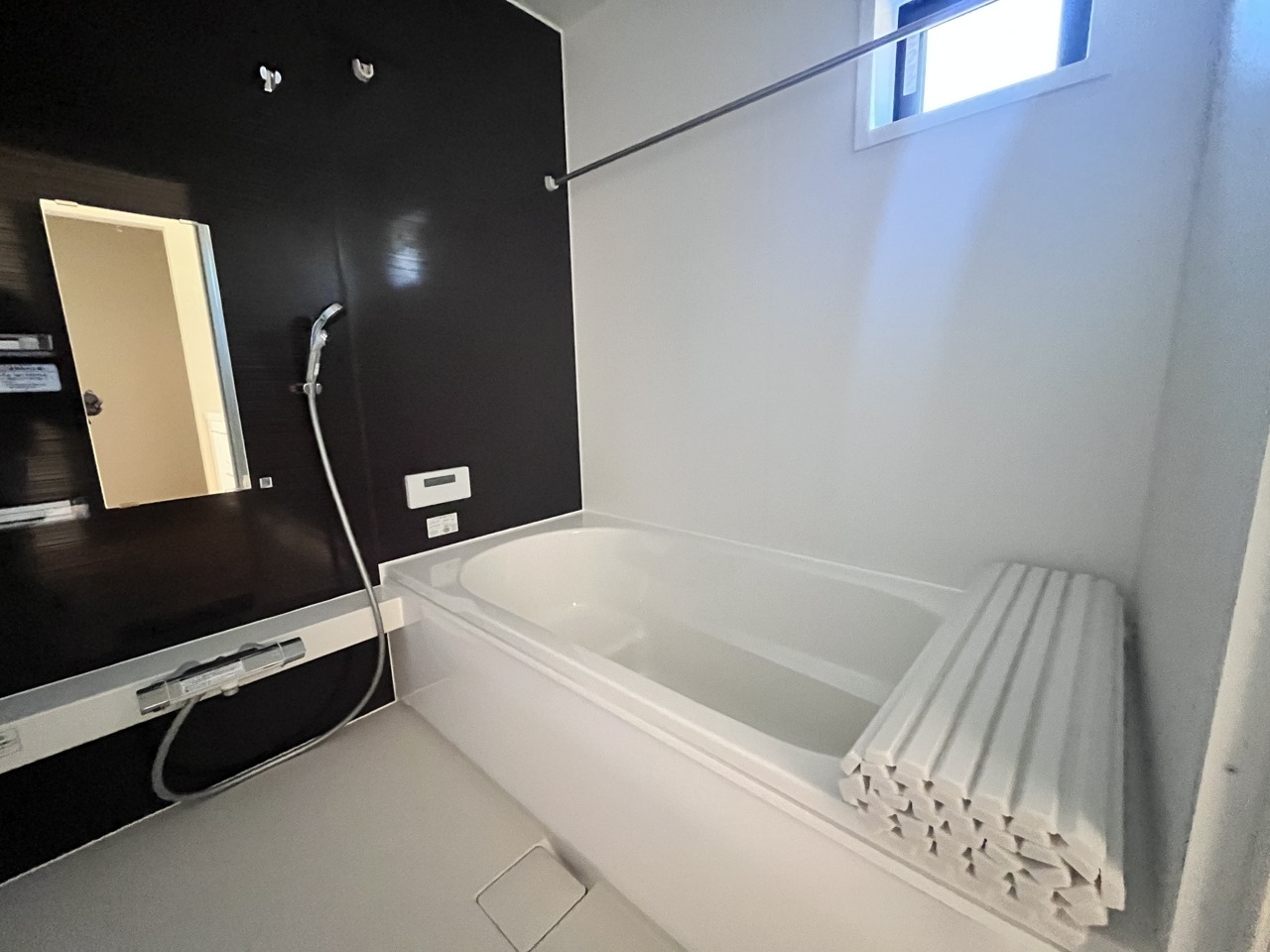 落ち着いた色味の浴室で1日の疲れをゆっくりと癒してください。