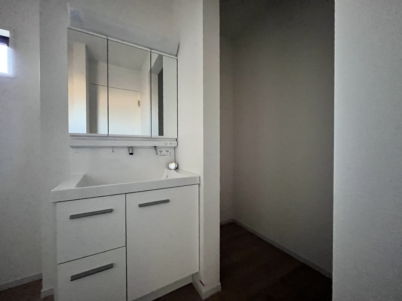 お出かけ前の身だしなみに一歩差がつく三面鏡。ミラー裏にはたっぷり収納もございます。