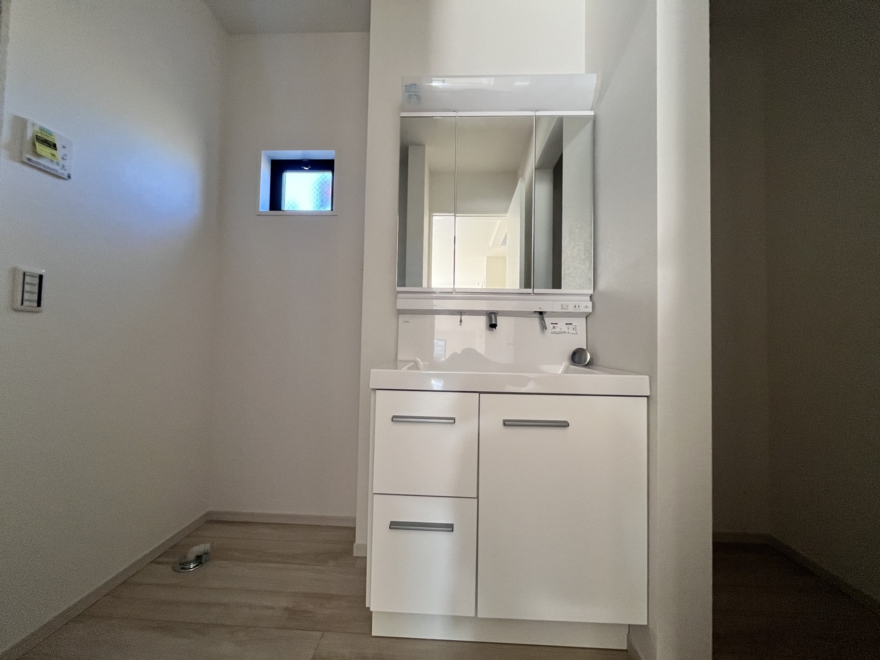 2号棟 お出かけ前の身だしなみに一歩差がつく三面鏡。ミラー裏にはたっぷり収納もございます。