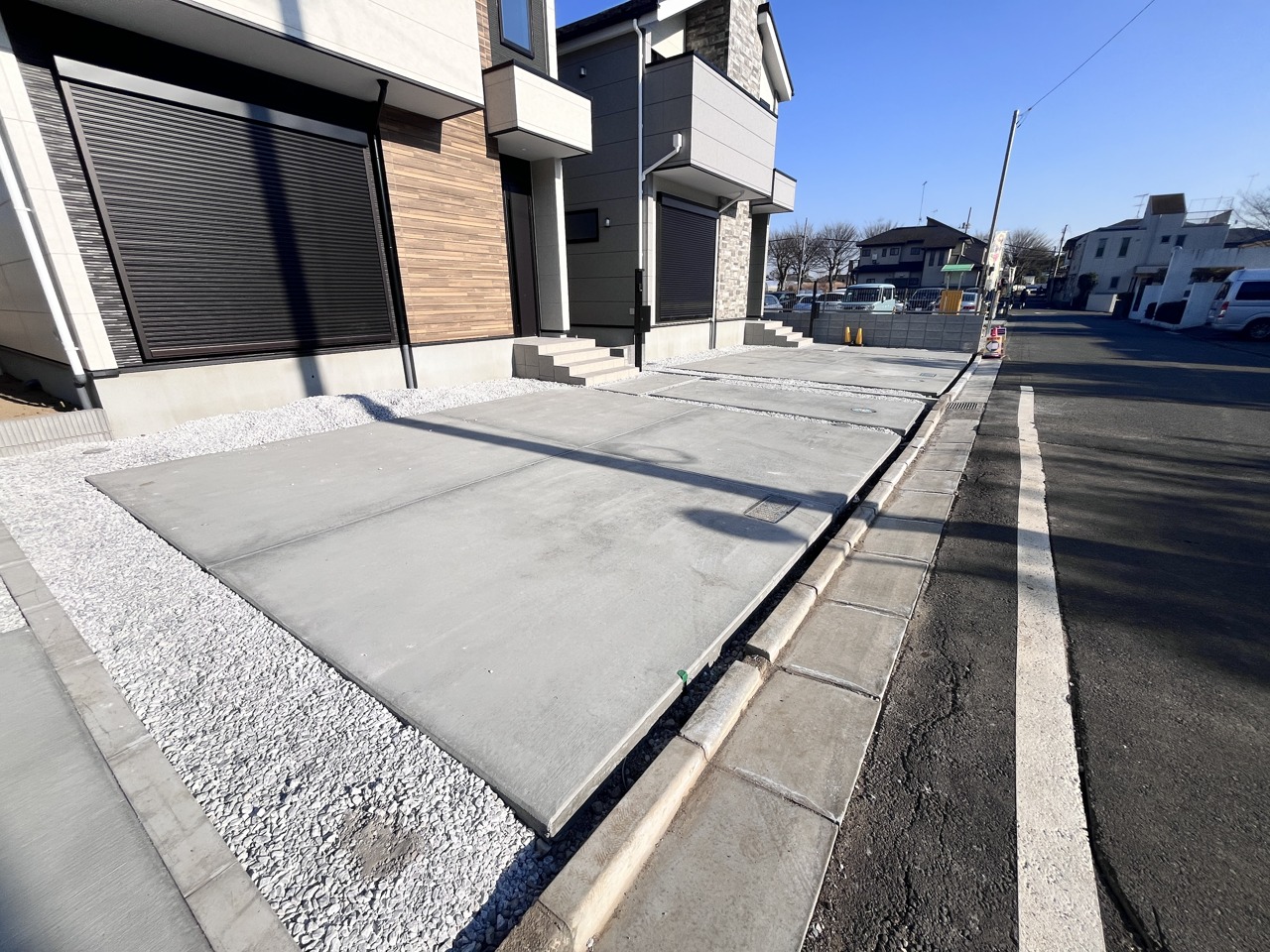 2号棟 前面道路は広く、駐車がしやすいです。駐車スペース2台分ございます。