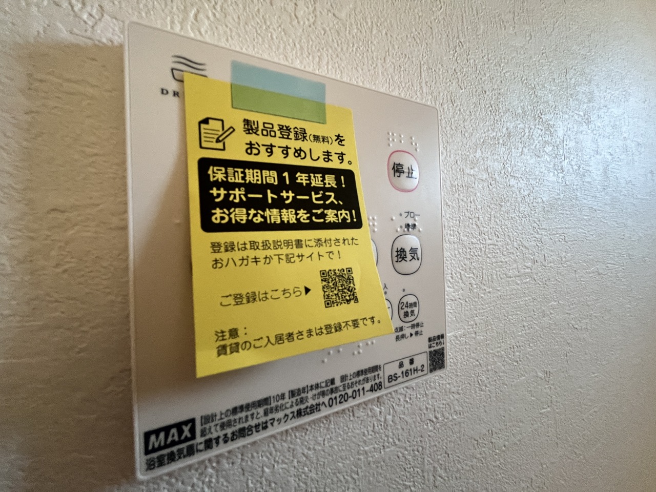 2号棟 換気乾燥機のリモコン