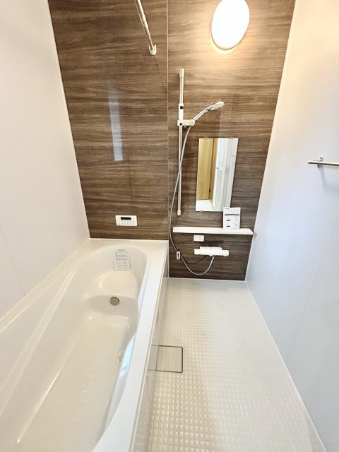 その日の疲れをゆっくりと落としてくれる場所、お子様との大事なひと時を楽しくしてくれる場所。曲線美も感じられるくつろぎのバスタブは、半身浴も楽しめる居心地の良さ。