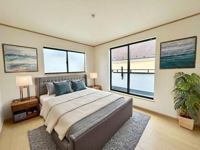 大きな開口部から明るい光が差し込む、日中の室内の明るさがこの部屋の魅力です。