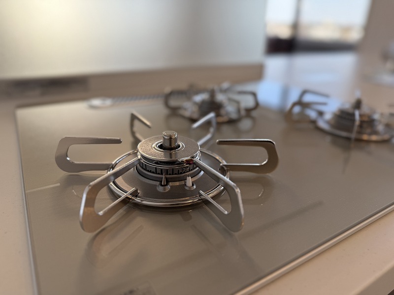 キッチンは新規に交換。3口タイプのコンロです