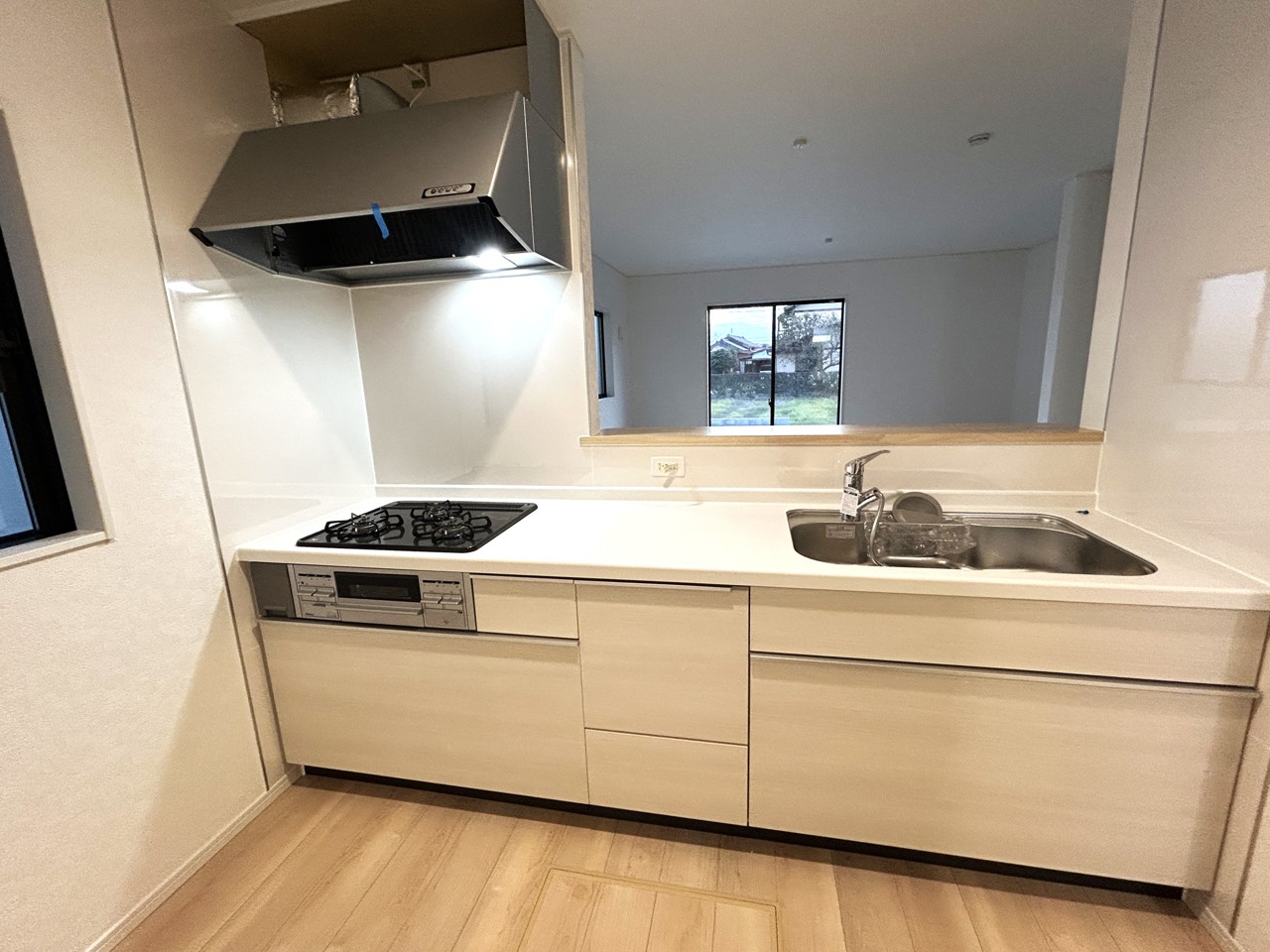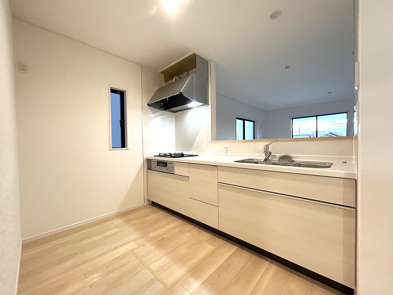 平坦地LDK15帖以上床下収納省エネ給湯器ガスコンロシステムキッチンカウンターキッチントイレ2ヶ所温水洗浄便座浴室乾燥機浴室1坪以上浴室に窓ウォークインクローゼットバリアフリー仕様TVモニタ付インターホンコンビニ400m以内フラット35Sに対応