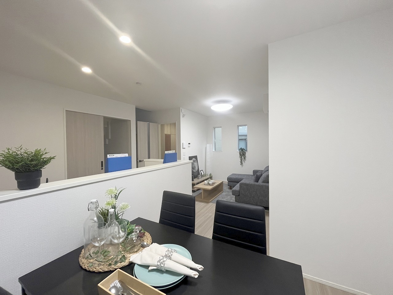 カウンターキッチンならではの開放的な見通し、全体が見渡せることでご家族の団欒スペースもより明るく笑顔が溢れる空間となります。