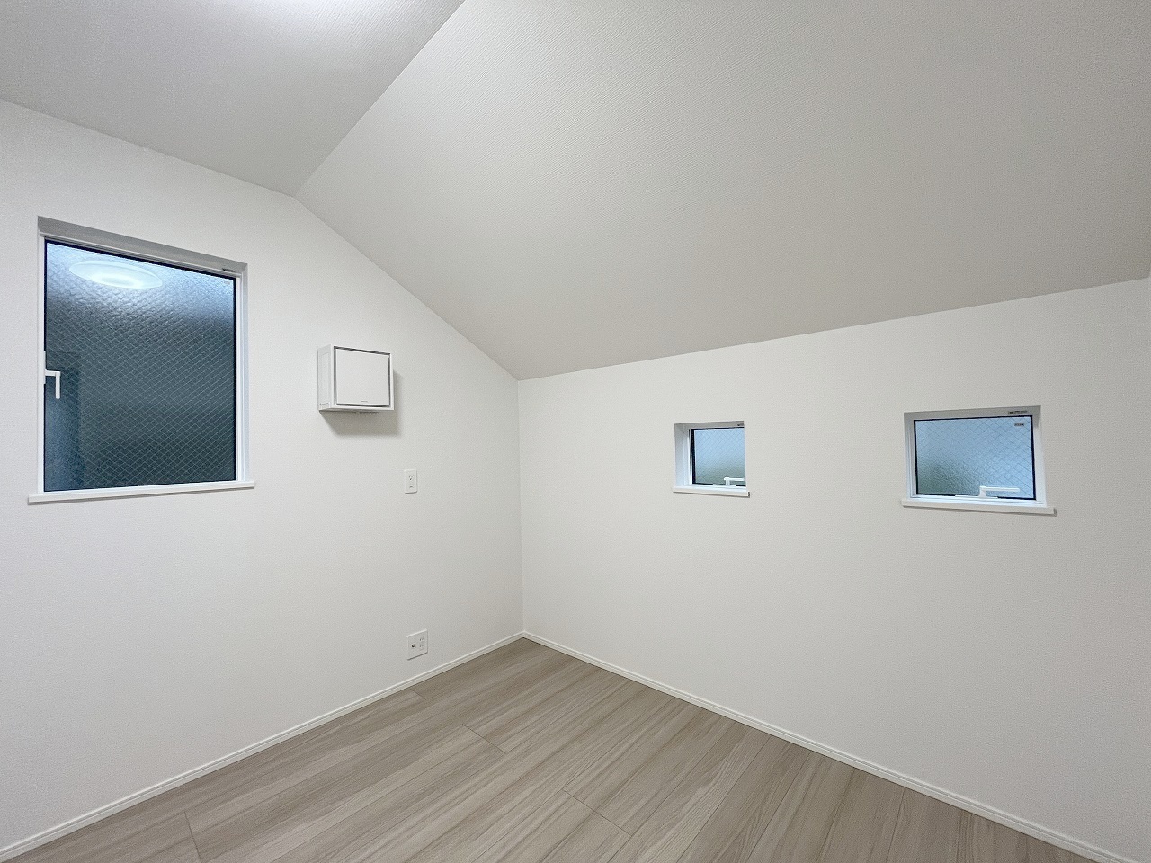 勾配天井の2階のお部屋。この勾配の角度がお洒落な雰囲気を感じさせてくれます。