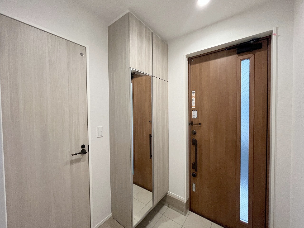 玄関は家の第一印象を左右する重要な場所。ほどよい広さとスタイリッシュな色遣いが印象的です。