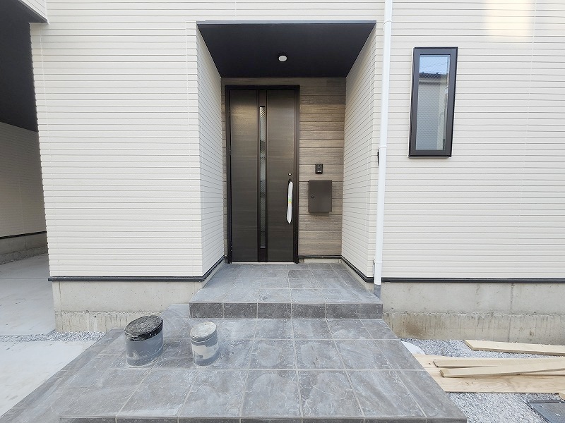 玄関は家の第一印象を左右する重要な場所。ほどよい広さとスタイリッシュな色遣いが印象的です。