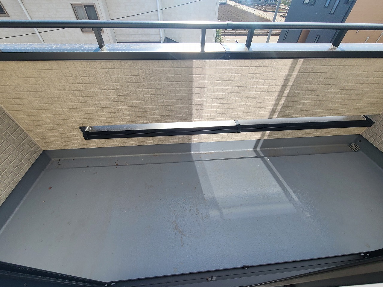 屋根付き。南側のお部屋から出入りできる、奥行きのあるワイドバルコニー。心地よい陽射しと暖かな風を楽しむことが出来ます。