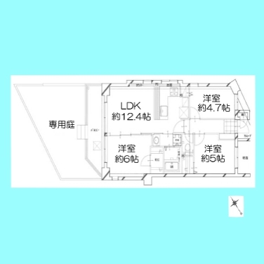 | 間取 | 3LDK (LDK12.4帖、洋室6帖、洋室5帖、洋室4.7帖) | ||