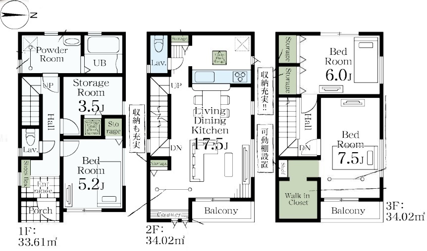 | 間取 | 3SLDK (LDK17.5帖、洋室7.5帖、洋室6帖、和室5.2帖、S3.5帖) | ||
