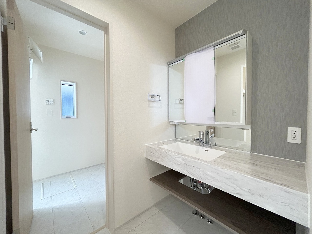 収納力と機能性に優れた、お手入れラクラク洗面化粧台。