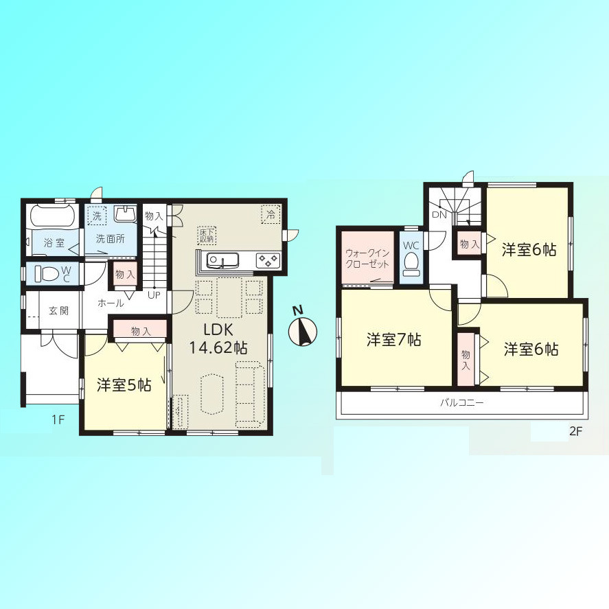| 間取 | 4LDK (LDK14.62帖、洋室7帖、洋室6帖、洋室6帖、洋室5帖) | ||