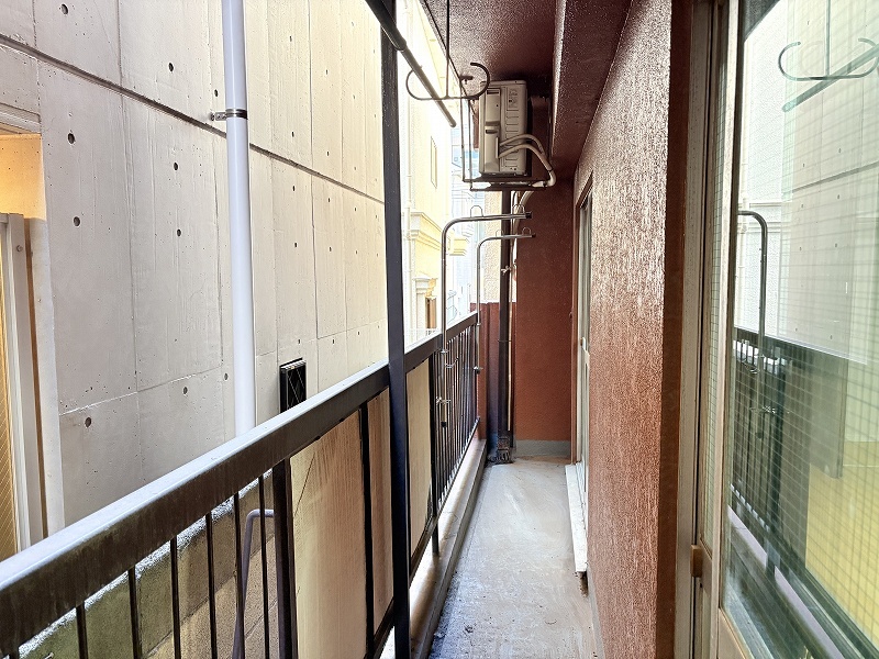 バルコニー正面は隣地アパートになっていますが、目隠しが設置されています。