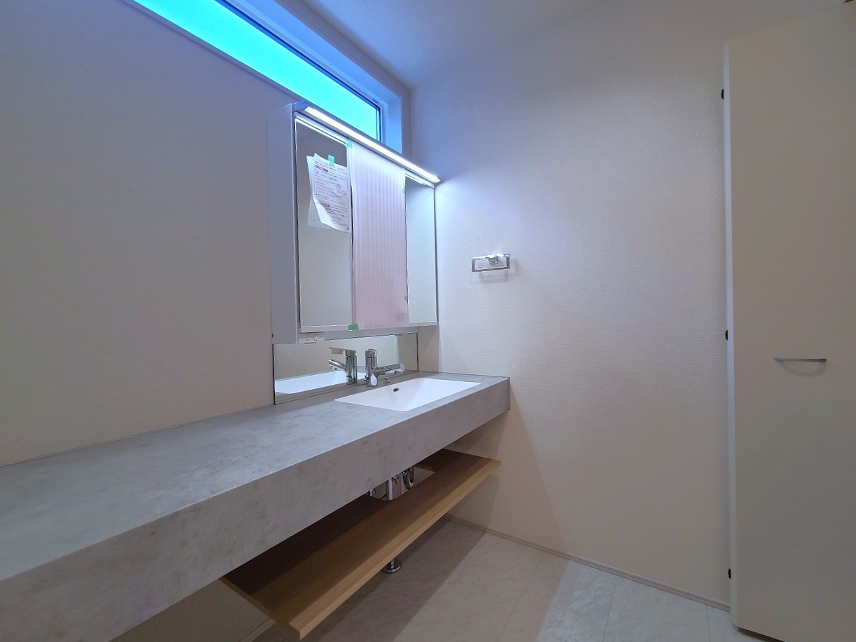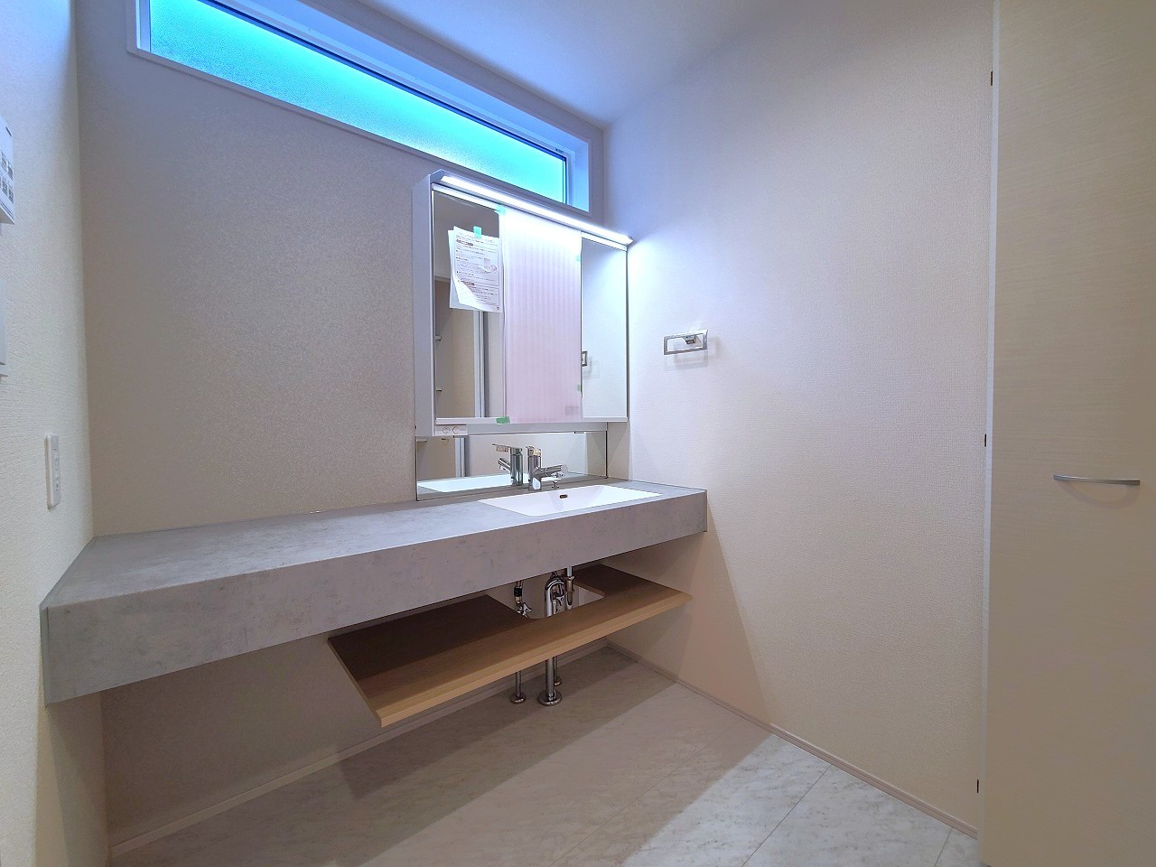 2号棟 使い勝手の良い洗面台、窓があることで換気もしやすく清潔感のある空間を保てます。