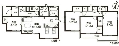 | 間取 | 4LDK (LDK15.12帖、洋室7.5帖、洋室6.25帖、洋室6.12帖、洋室4.5帖) | ||