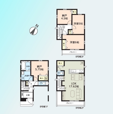| 間取 | 2SLDK~3SLDK (洋室6帖、LDK18.62帖、洋室4.5帖、洋室7帖、S5帖) | ||