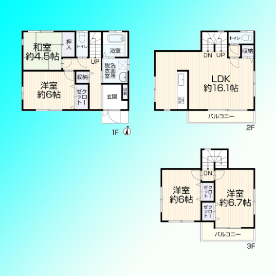 | 間取 | 4LDK (洋室6帖、和室4.5帖、LDK16.1帖、洋室6帖、洋室6.7帖) | ||