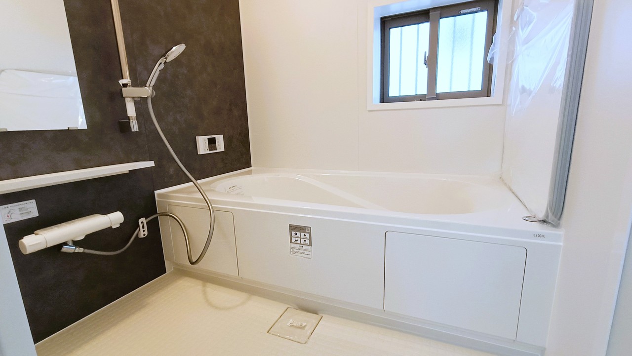 A号棟 広々1坪タイプのゆったり浴室ユニット。防カビ・抗菌素材なのもうれしい。