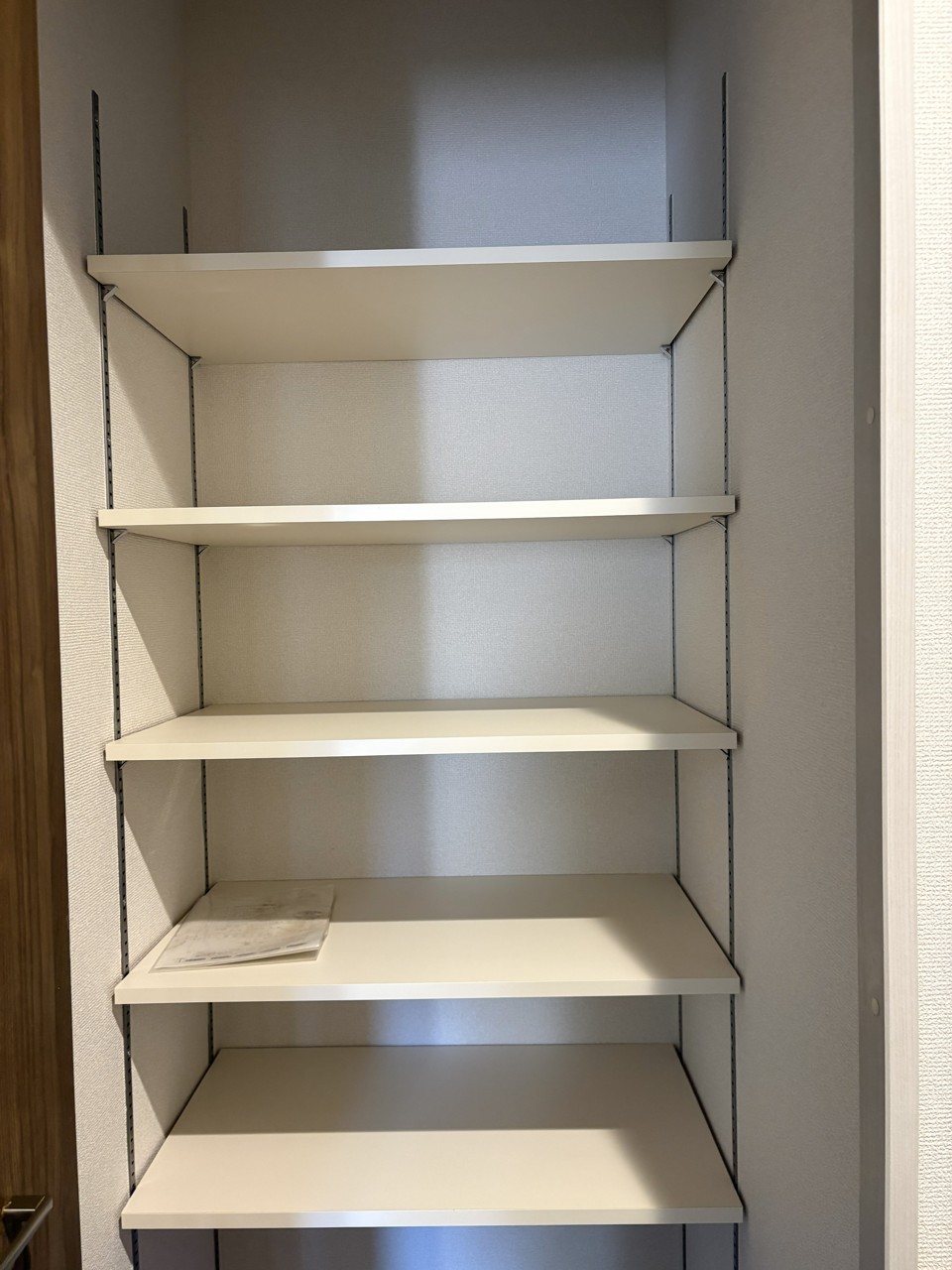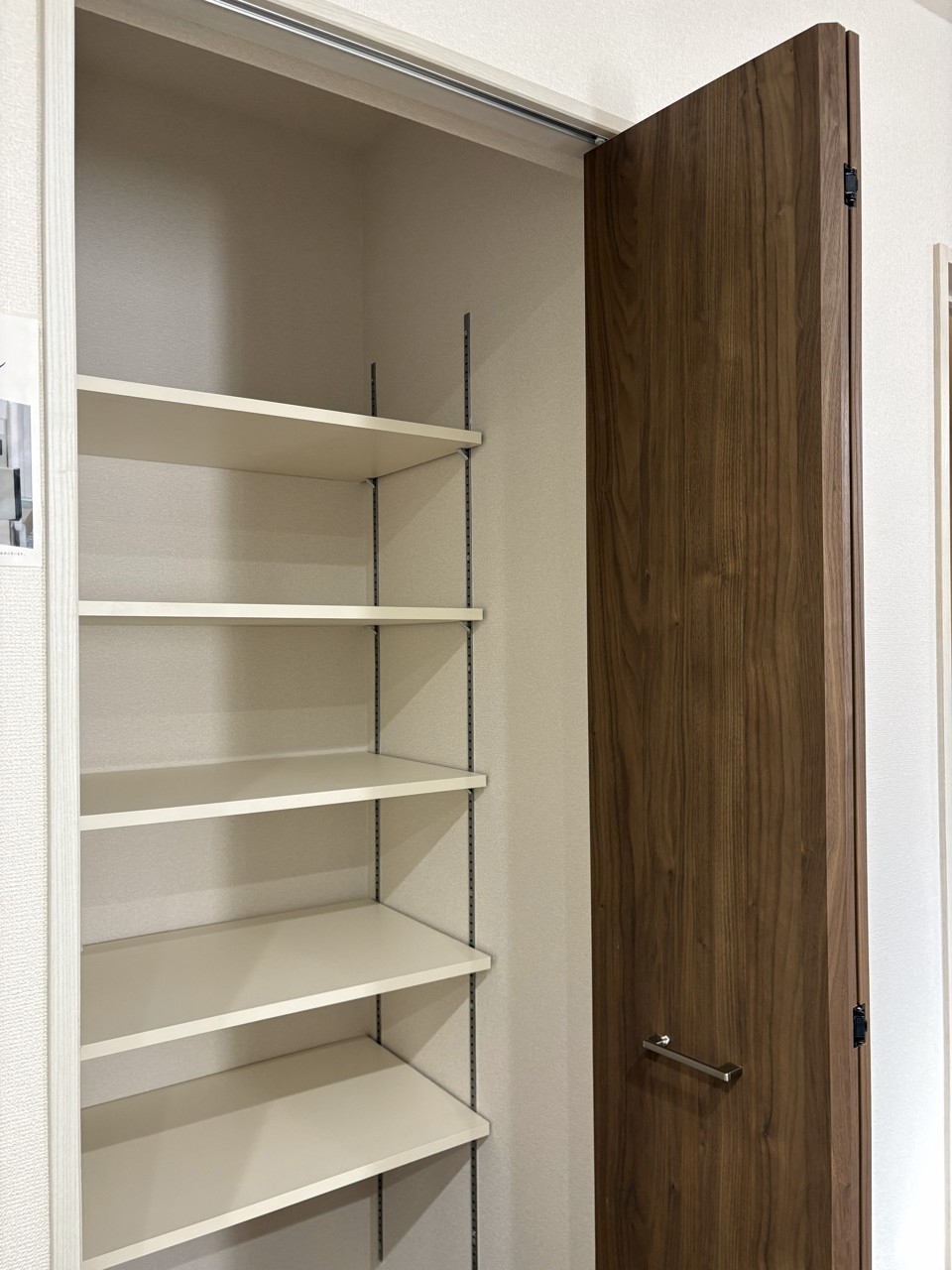 整然とした棚と、趣ある木目調の扉が調和する空間。