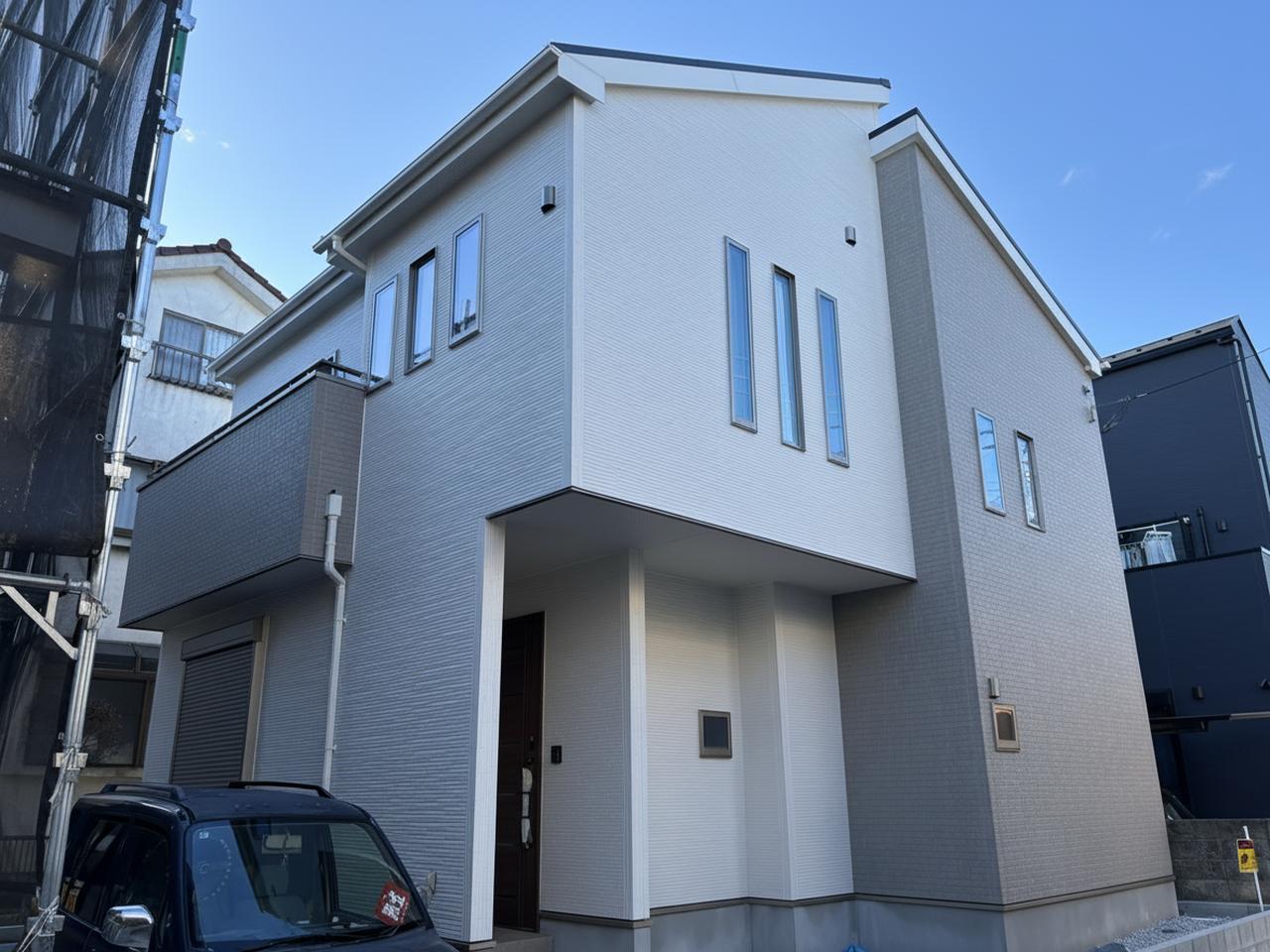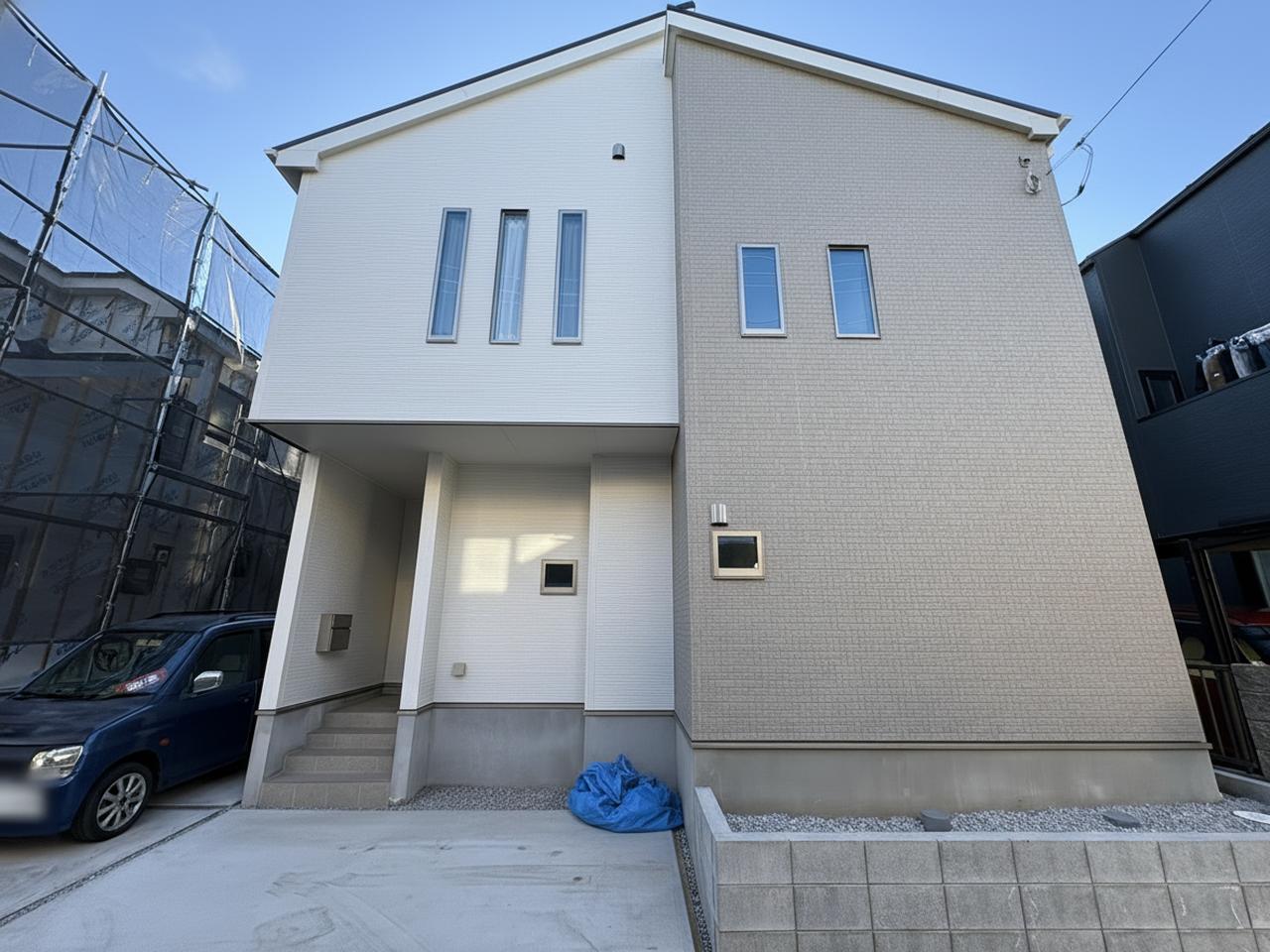 モダンな外観が街並みに調和し、落ち着きある暮らしを予感させる住まい。