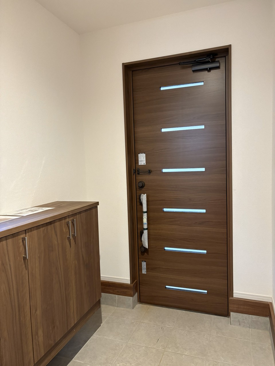 温もりを感じる木目調のドアと、上質な空間が広がる玄関