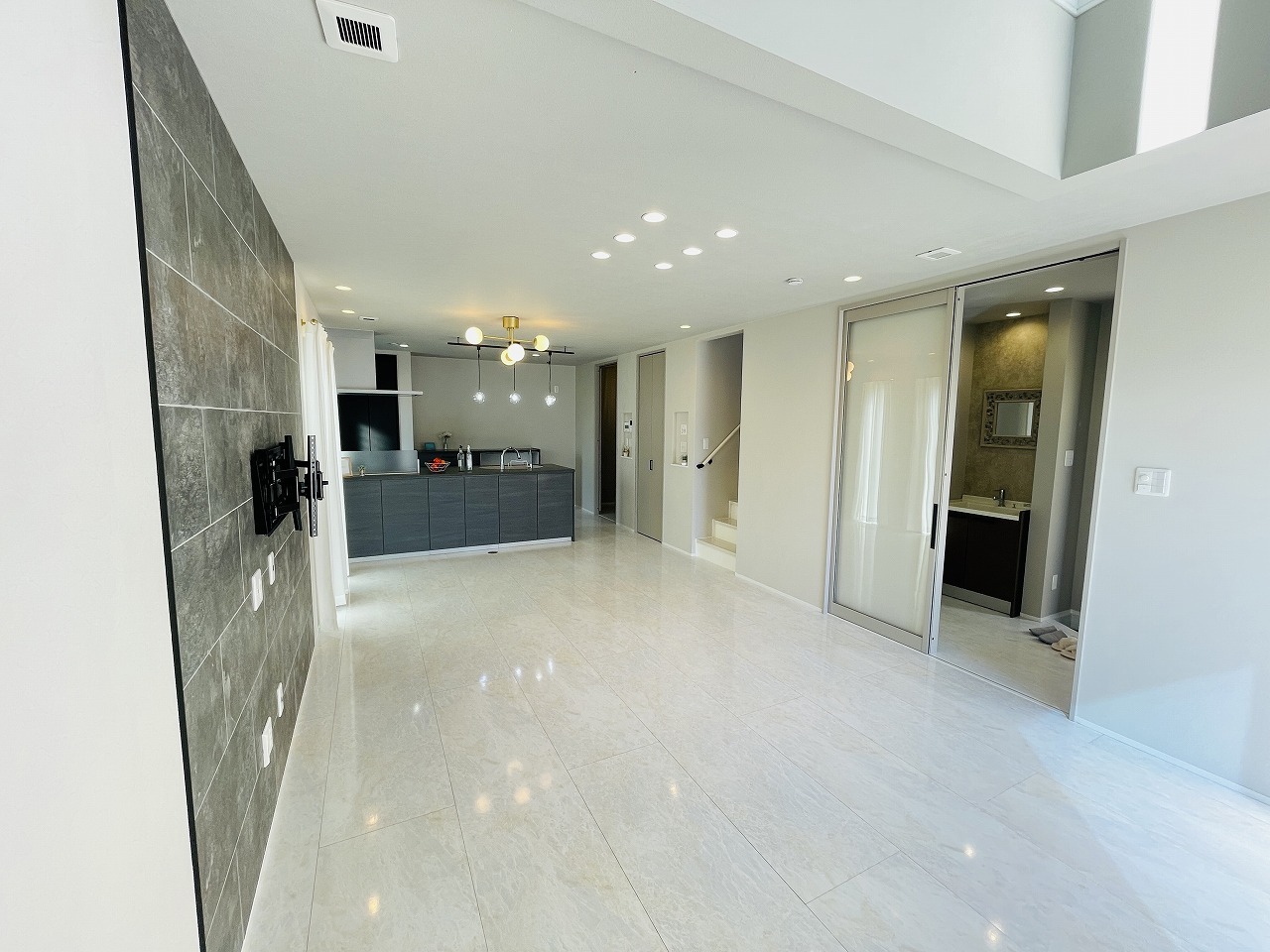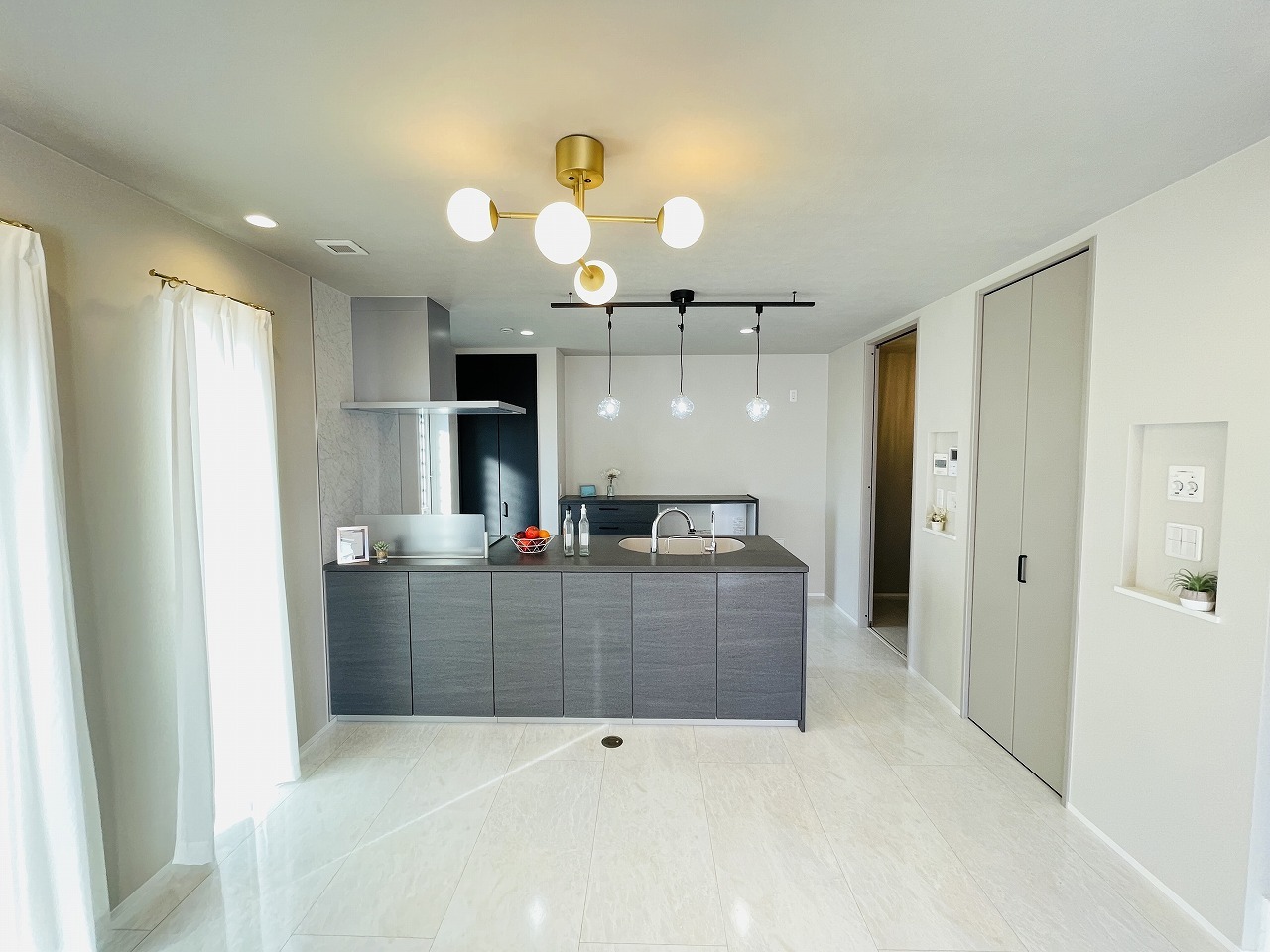 カウンターキッチンならではの開放的な見通し、全体が見渡せることでご家族の団欒スペースもより明るく笑顔が溢れる空間となります。