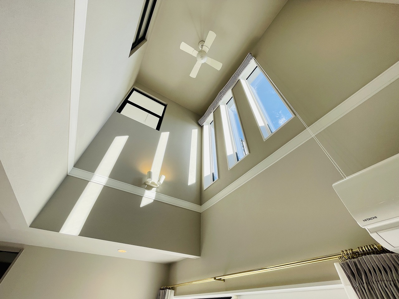 吹抜けの空間を意識した開放感のあるリビング。
