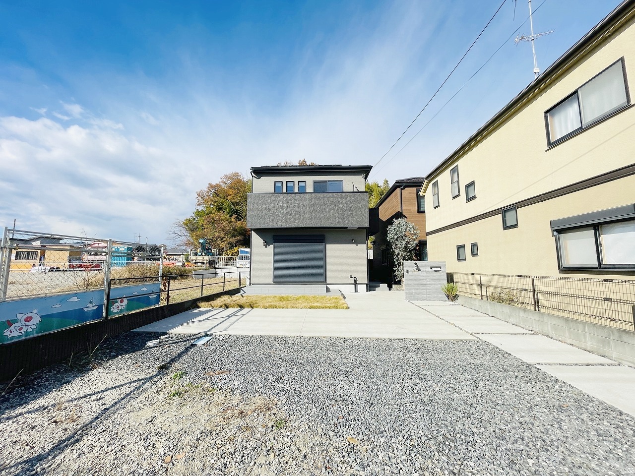 周辺の街並みの中で適度な主張、生活に溶け込むシンプルなデザインの外観が魅力の一戸建です。