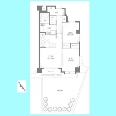 | 間取 | 2LDK (LDK11帖、洋室5.7帖、洋室5.2帖) | ||