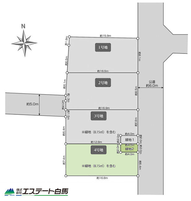 3号地 6m幅員の道路に面しておりお車の運転が苦手な方でも安心して出入りいただけます。