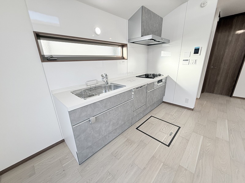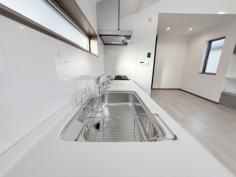 キッチンは、カウンターや壁付けタイプ、アイランドタイプ様々なパターンが御座います。 お好みも分かれる所ではありますが、壁付け対応は閉鎖的にならずに明るいキッチンスペースとしてご希望を頂く事も多いタイプ。