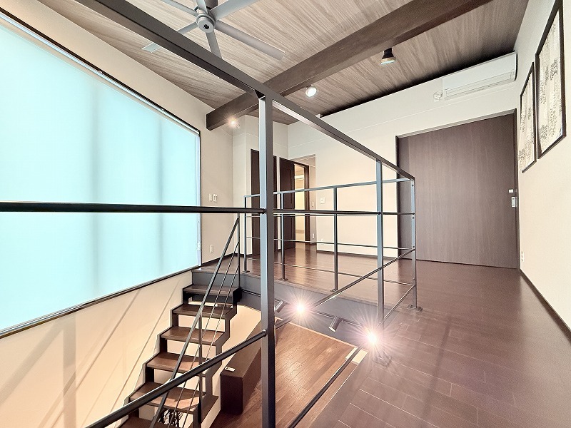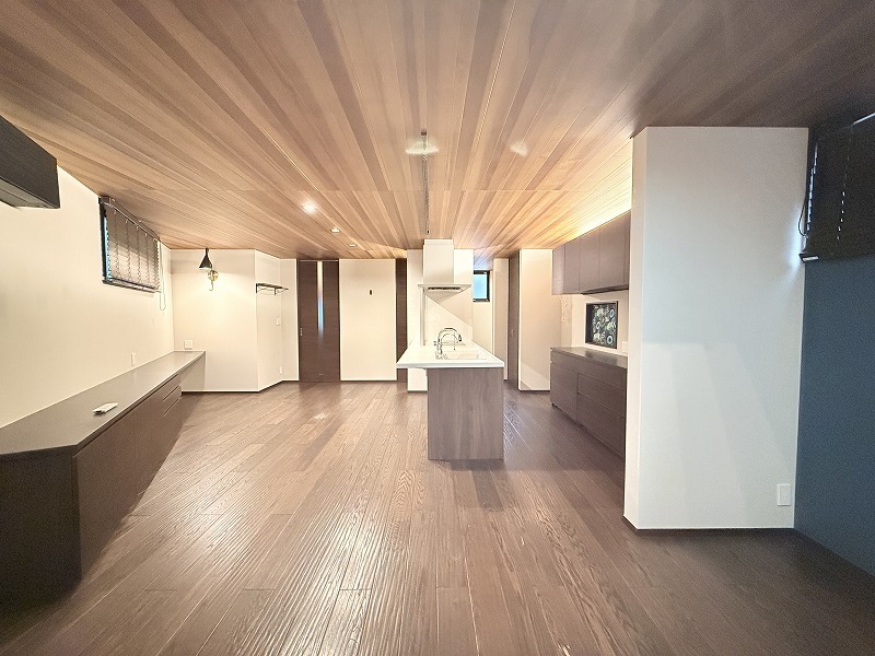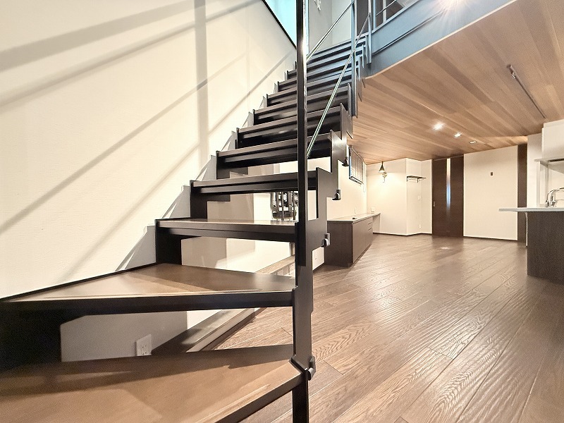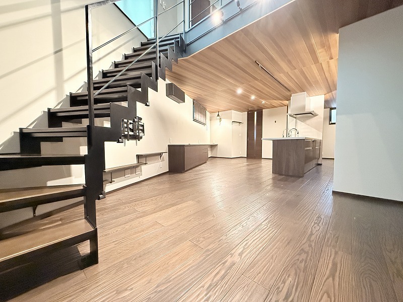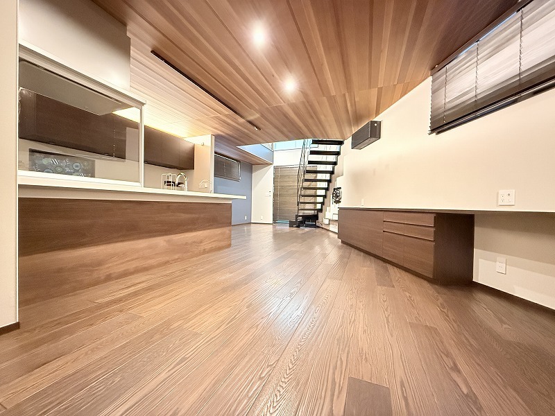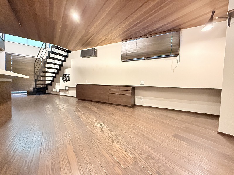 床暖房完備、スケルトン階段のLDK空間は開放的なワンフロアー