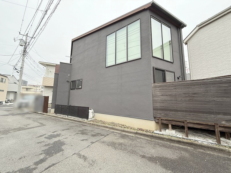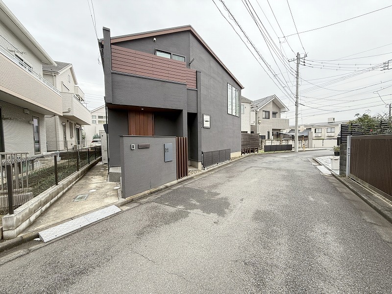 周辺の街並みの中で適度な主張、生活に溶け込むシンプルなデザインの外観が魅力の一戸建です。