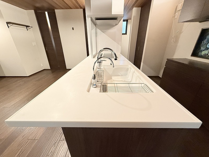 アイランドキッチンならではの開放的な見通し、全体が見渡せることでご家族の団欒スペースもより明るく笑顔が溢れる空間となります。