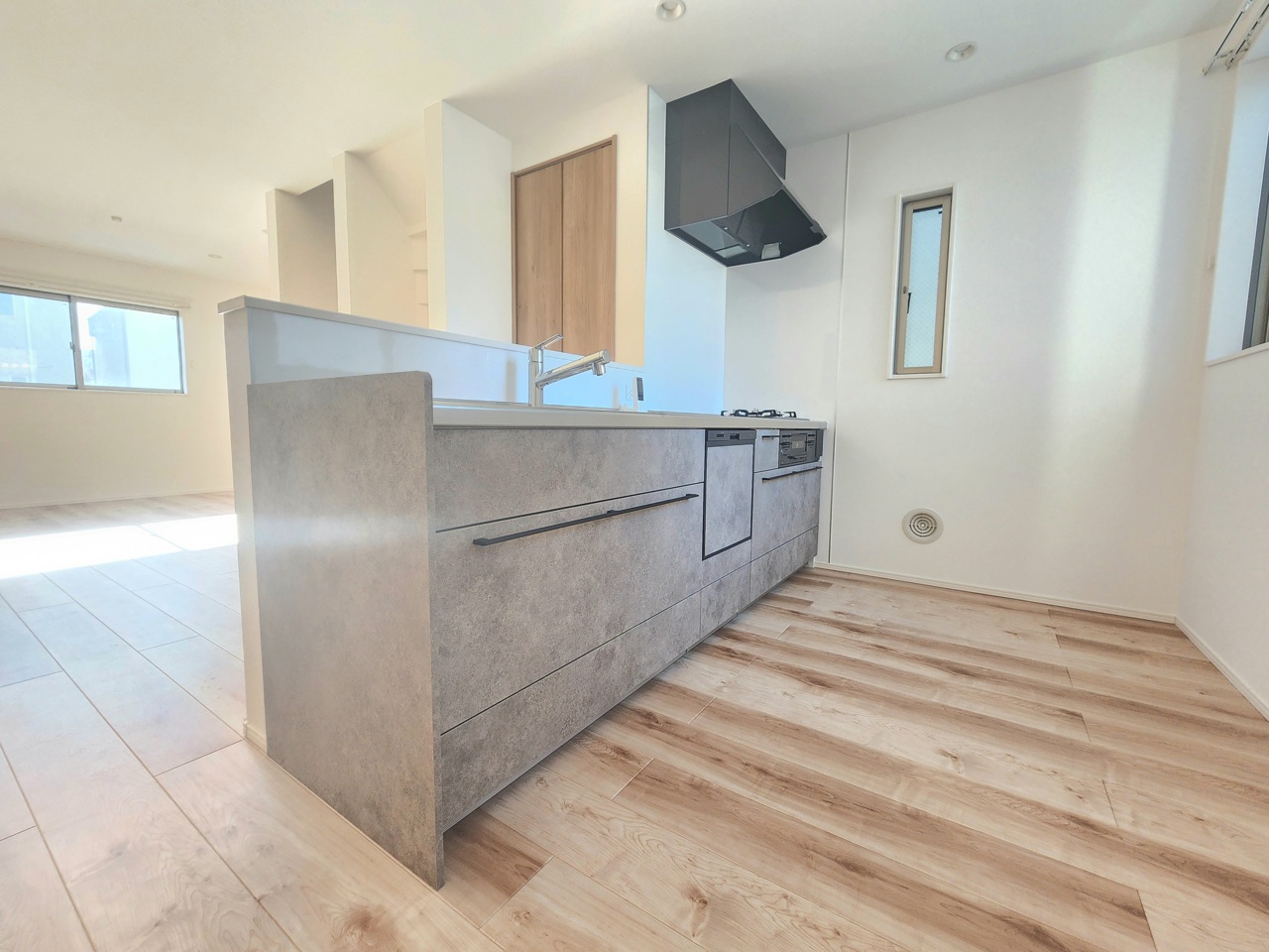 リビングで遊ぶお子様を見守りながらお料理ができる対面キッチン。