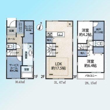 | 間取 | 2LDK+2S (S4.2帖、LDK17.5帖、洋室4.2帖、洋室6.4帖、S2.6帖) | ||