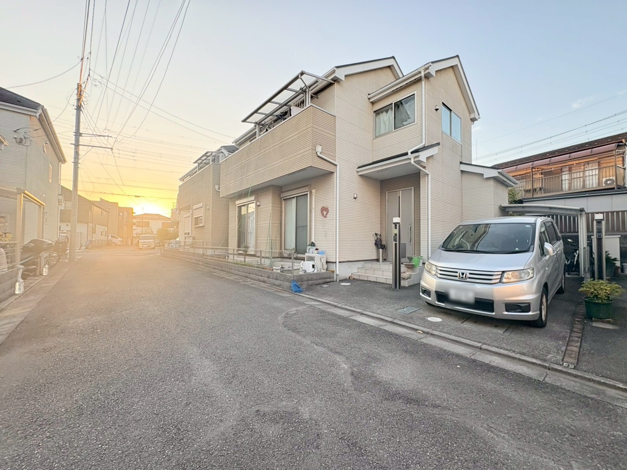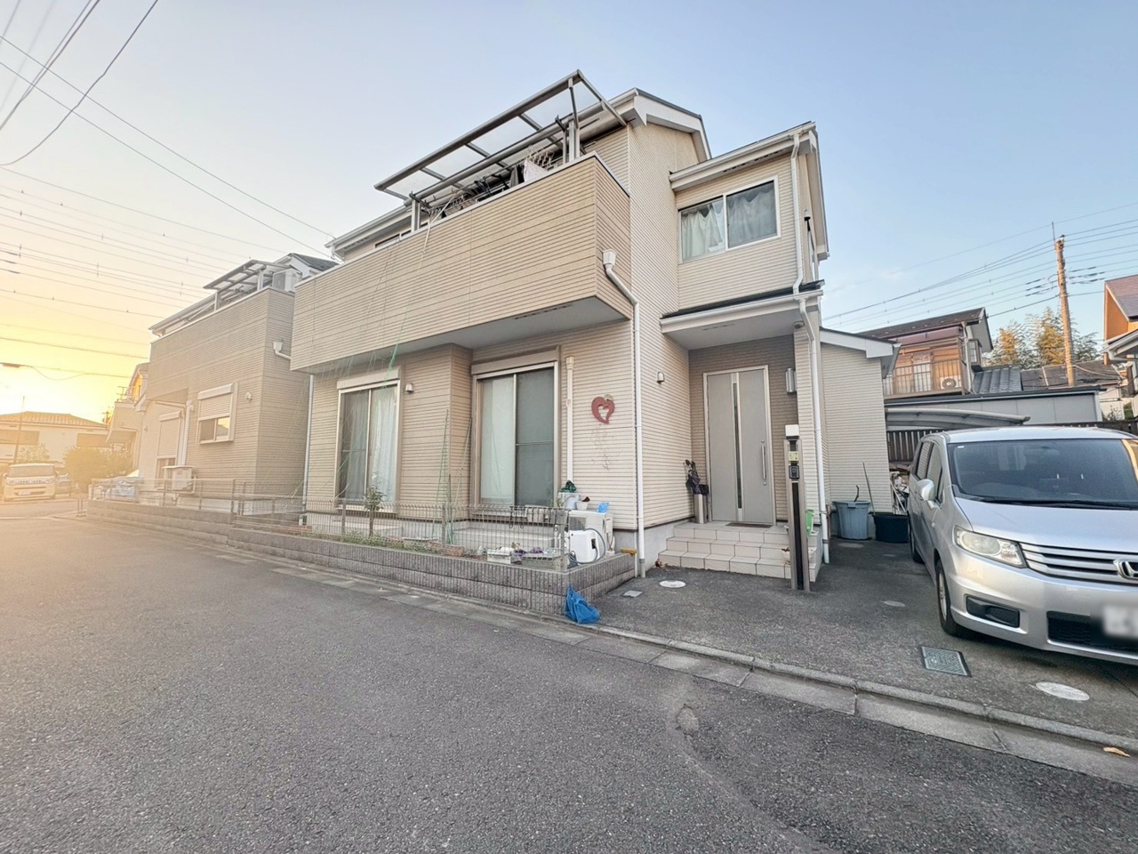 周辺の街並みの中で適度な主張、生活に溶け込むシンプルなデザインの外観が魅力の一戸建です。