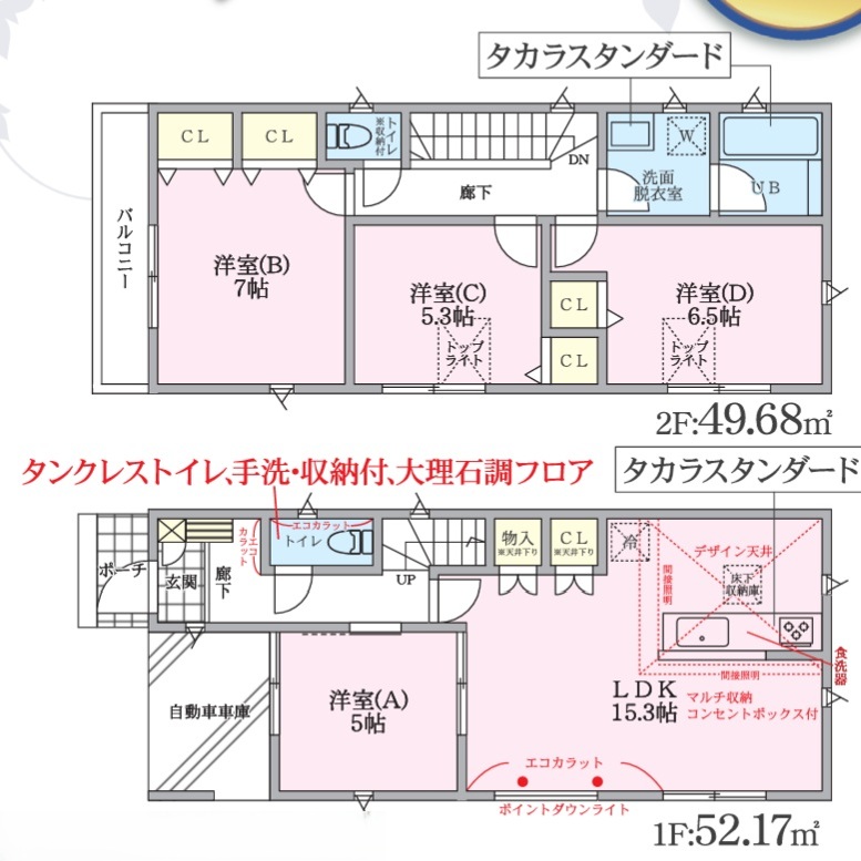 | 間取 | 4LDK (LDK15.3帖、洋室5帖、洋室7帖、洋室6.5帖、洋室5.3帖) | ||