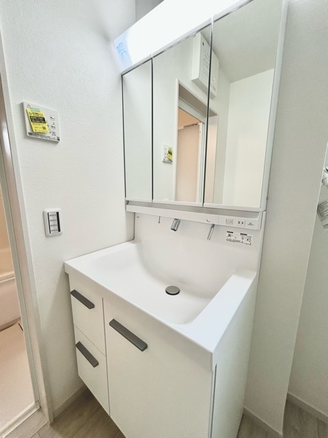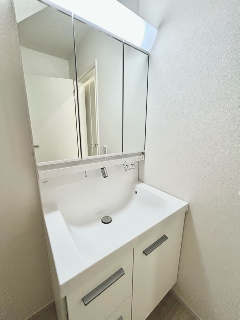 1号棟 お出かけ前の身だしなみに一歩差がつく三面鏡。ミラー裏にはたっぷり収納もございます。 2026/03/22m