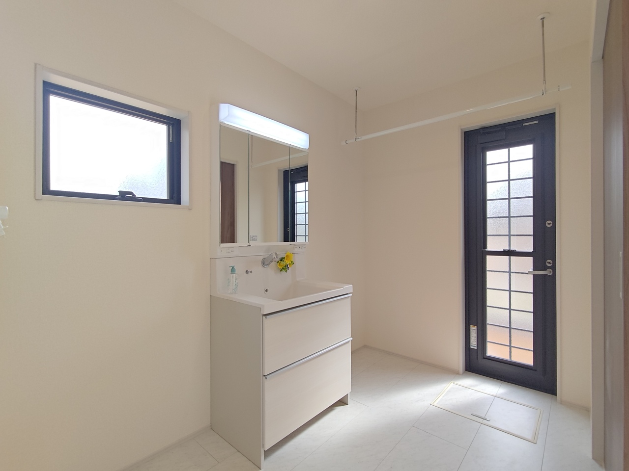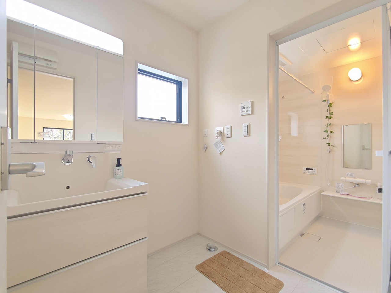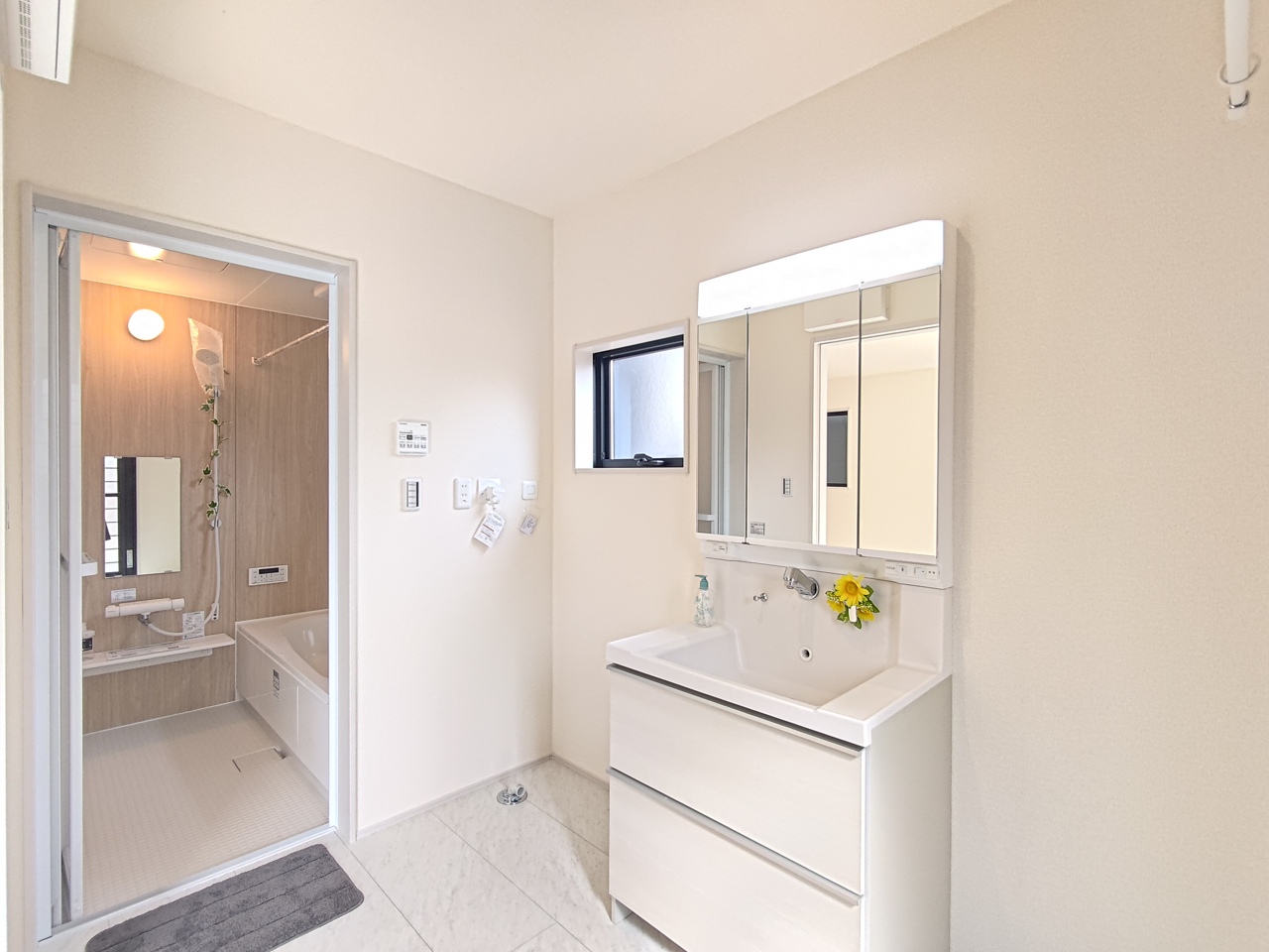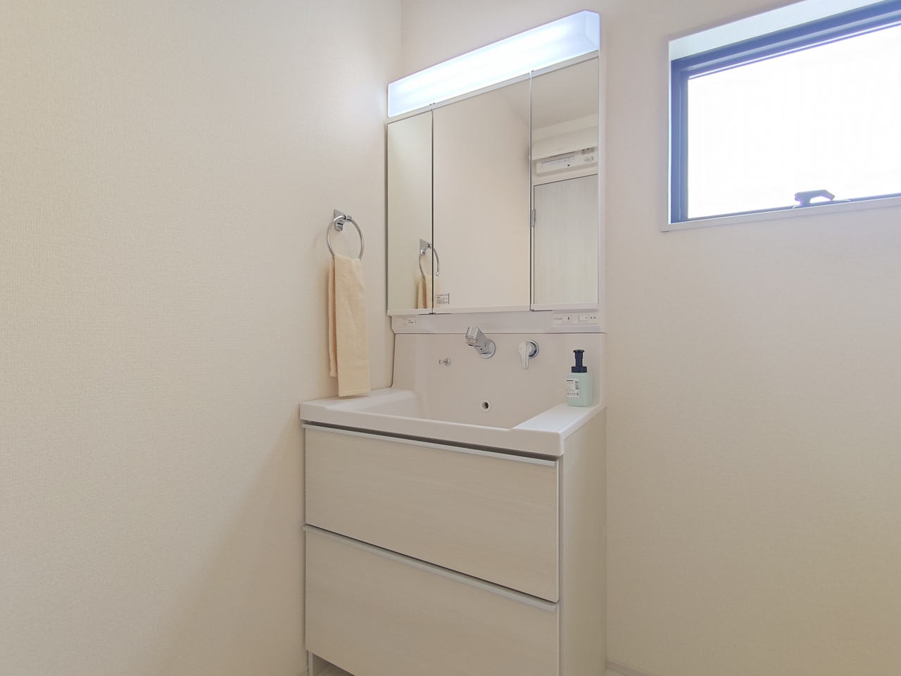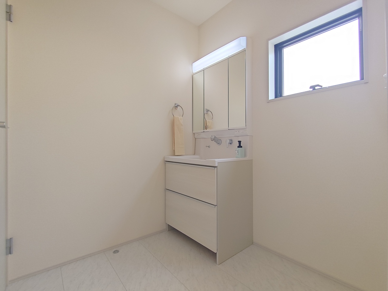 1号棟 使い勝手の良い洗面台、窓があることで換気もしやすく清潔感のある空間を保てます。 2026/02/20m