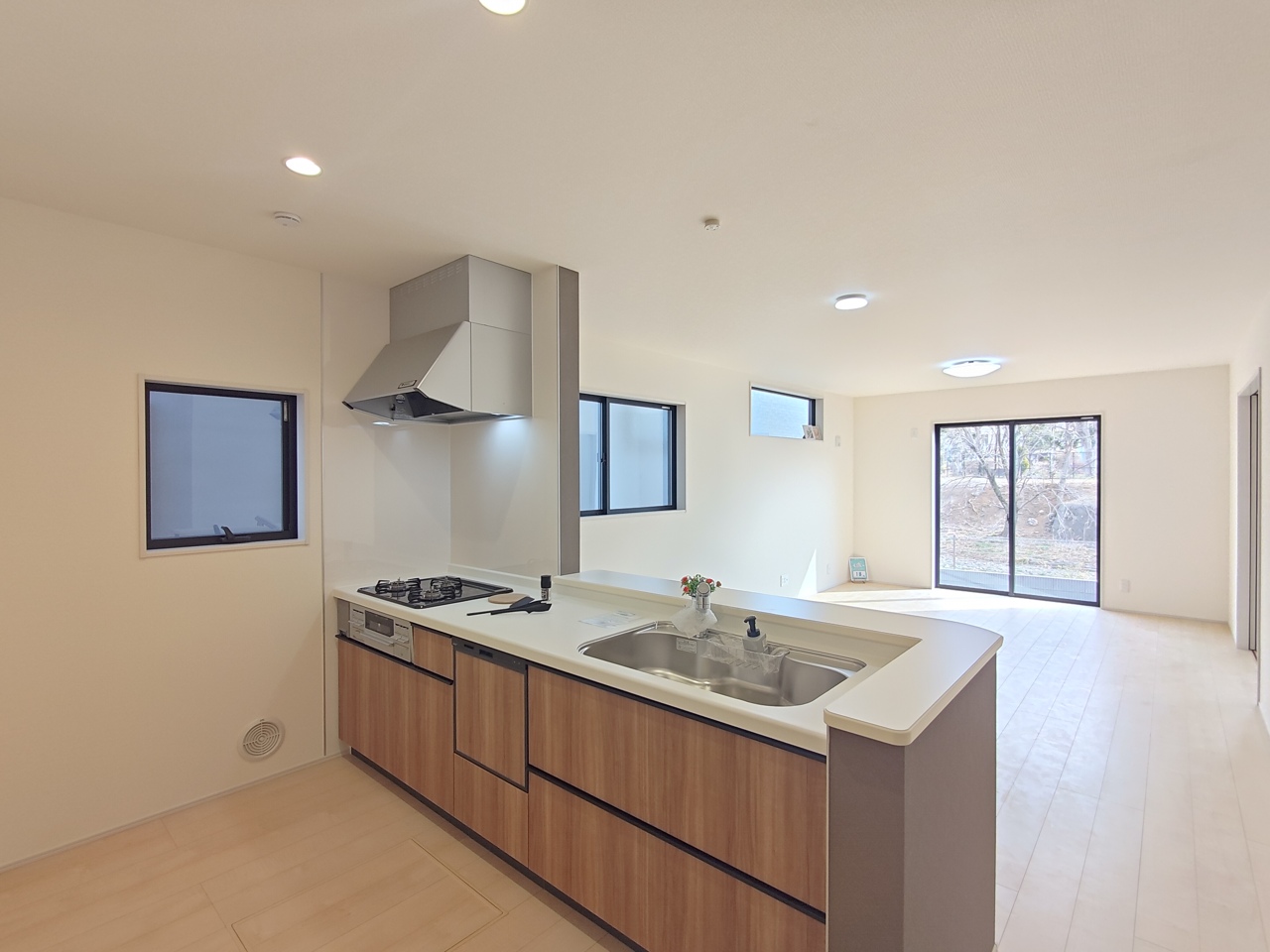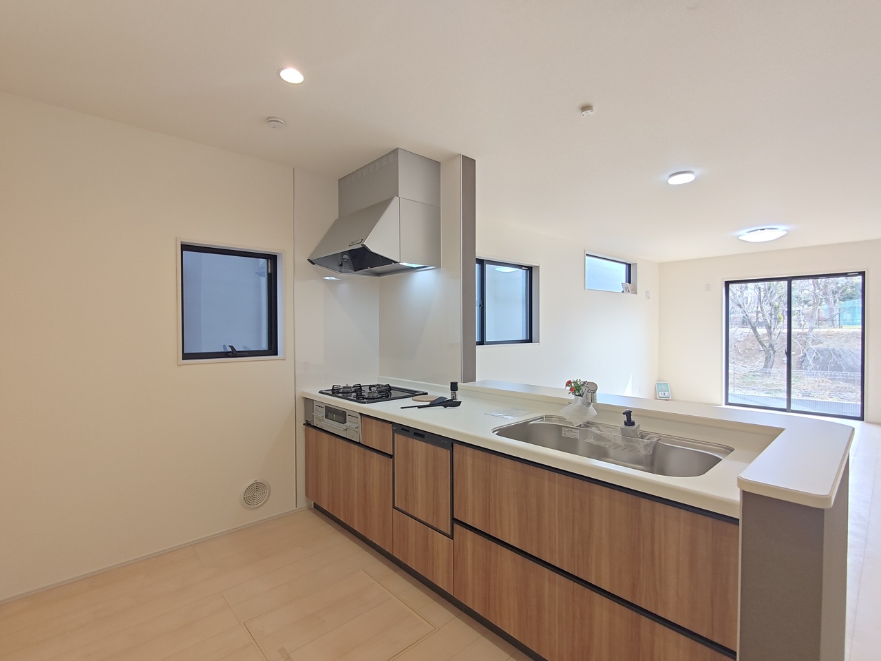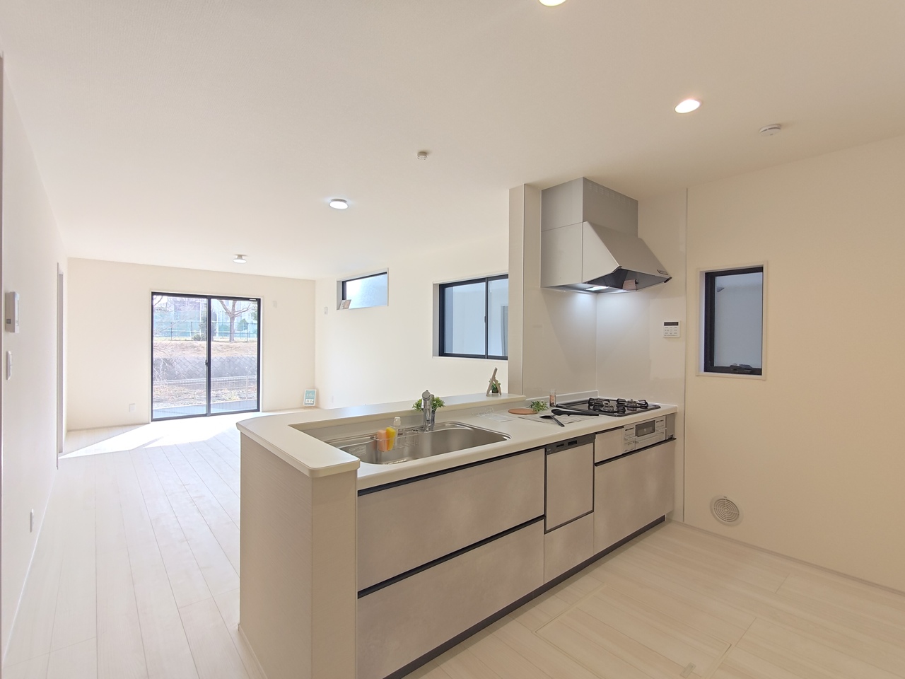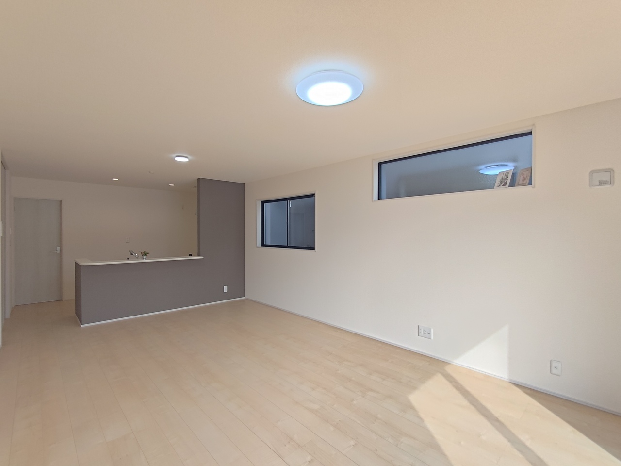 1号棟 どんな家具にでも相性が良い清潔感ある白色調のクロスを採用。主張しすぎない配色、耐久性にも優れた床材は日々のメンテナンスも楽に、快適に過ごして頂けるよう考えられています。 2026/02/20m