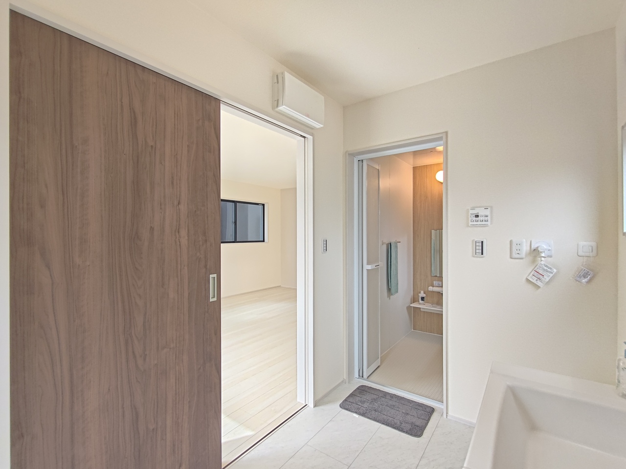 1号棟 一緒にお風呂に入っている子供達の声がリビングまで聞こえてきそうな広々とした1坪バス 2026/02/20m