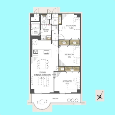 | 間取 | 3LDK (LDK15.4帖、洋室6帖、洋室5帖、洋室5帖) | ||